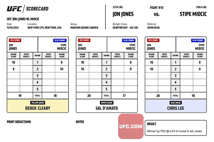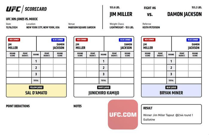 Официальные карточки судей за рингом ЮФС 309. На основе этих протоколов принимается решение о победителя боя.