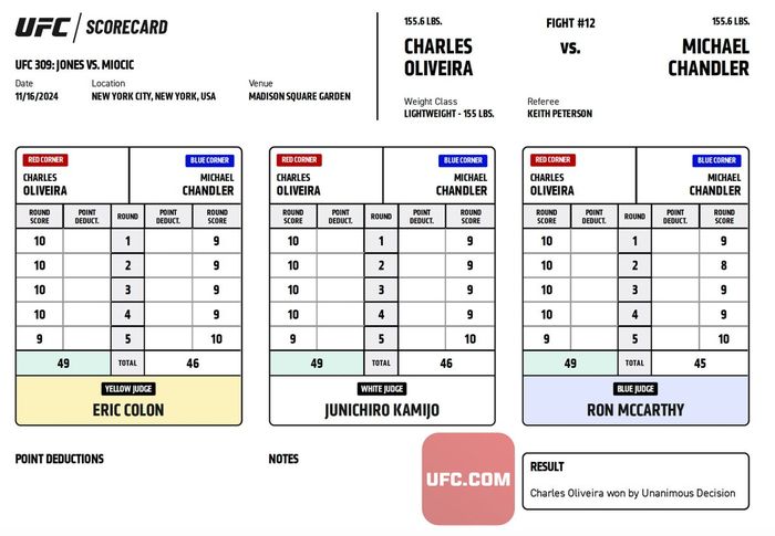 Страница турнира: UFC 309