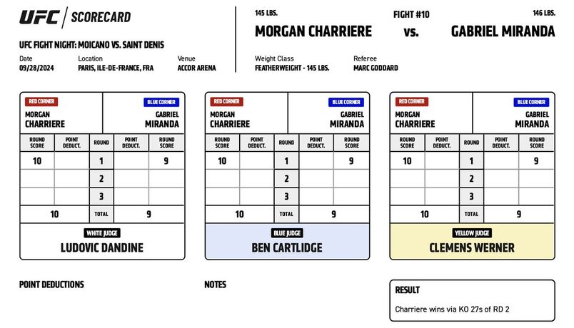 Чаррье нокаутировал соперника во втором раунде.